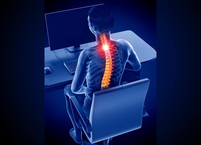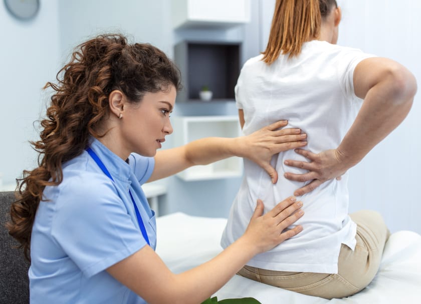- Pain that radiates away from the back into the buttocks, leg, or hip.